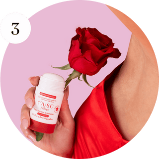 Después de más de dos años de investigación y desarrollo, y gracias al saber hacer de nuestros perfumistas en Grasse —la cuna mundial del perfume—, logramos un verdadero reto: integrar la icónica mezcla de rosa, almizcle blanco y oud en nuestro desodorante sólido, sin comprometer su fórmula natural (95% de ingredientes de origen natural) ni su eficacia premiada (100/100 en Yuka y galardonado en los Victoires de la Beauté).